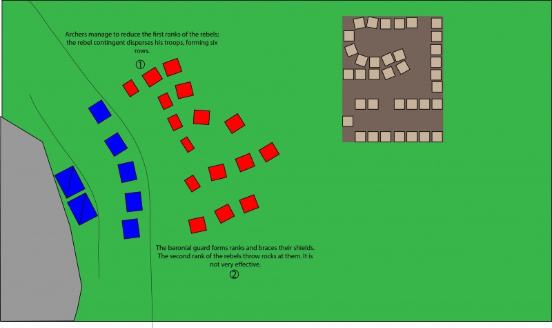 The Battle of the Coronation was fought between Baron Davon dul Naevius and a subversive rebel force grouped from nearby villagers. This is the second moment of the attack.