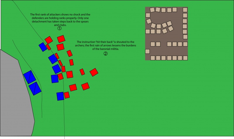 The Battle of the Coronation was fought between Baron Davon dul Naevius and a subversive rebel force grouped from nearby villagers. This is the third moment of the attack.